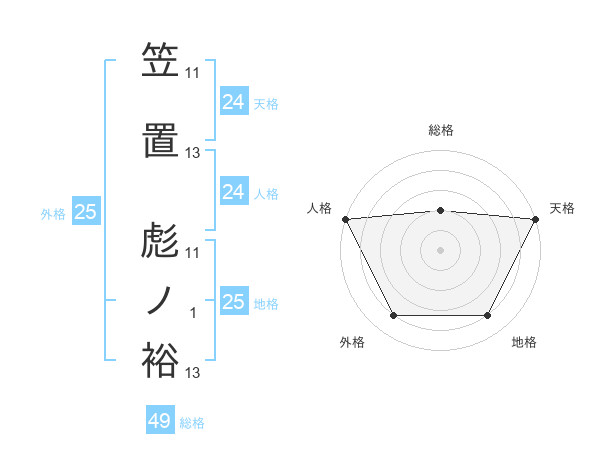 笠置 彪ノ裕さんを姓名の画数から五運を鑑定