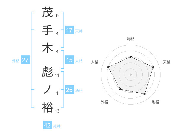 茂手木 彪ノ裕さんの総格は42画の3点!