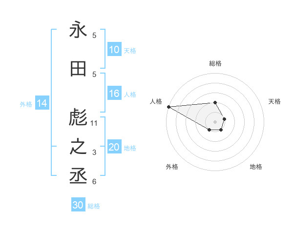 永田 彪之丞さんの総格は30画の2点
