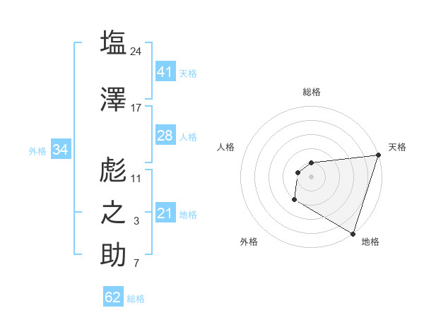 塩澤 彪之助さんの地格は21画の5点!