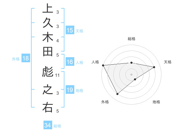 上久木田 彪之右さんを姓名の画数から五運を鑑定