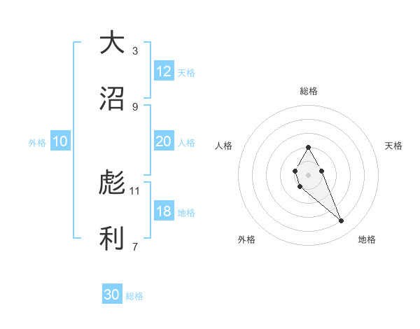 大沼 彪利さんを姓名の画数から五運を鑑定