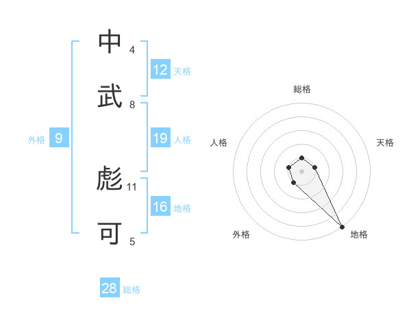 中武 彪可さんの総格は28画の1点!