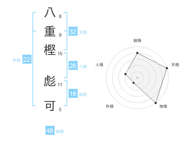 八重樫 彪可さんを姓名の画数から五運を鑑定