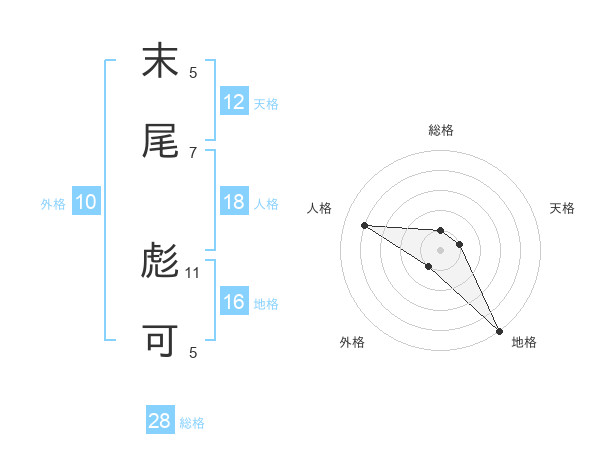 末尾 彪可さんを姓名の画数から五運を鑑定