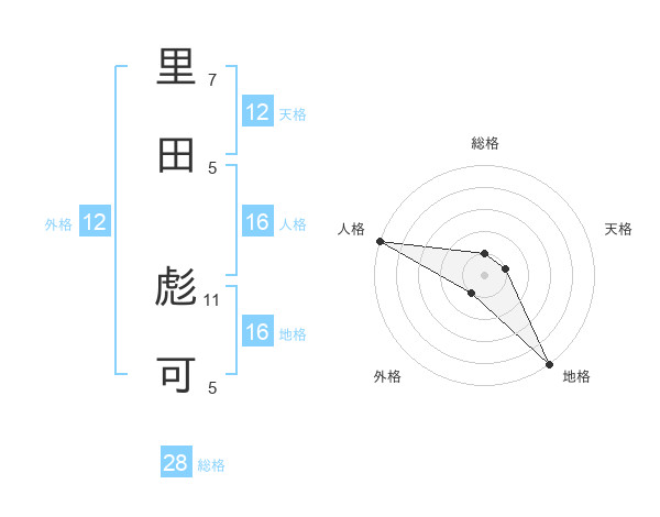 里田 彪可さんの天格は12画の1点!