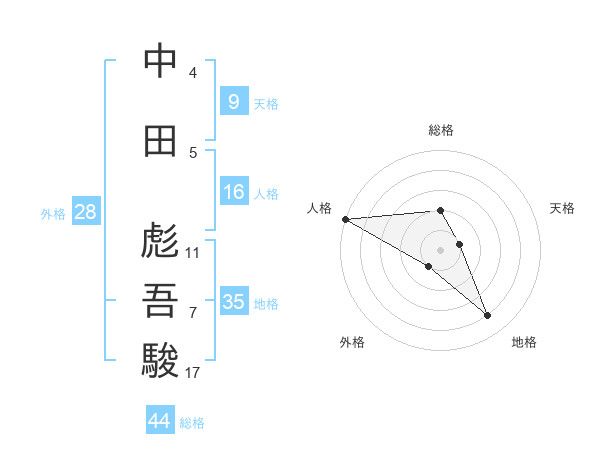 中田 彪吾駿さんを姓名の画数から五運を鑑定
