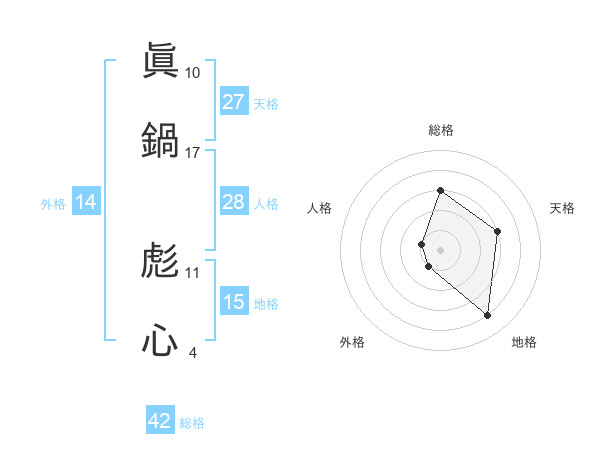 眞鍋 彪心さんの総格は42画の3点!