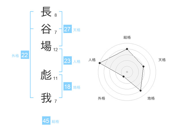 長谷場 彪我さんを姓名の画数から五運を鑑定