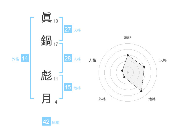 眞鍋 彪月さんを姓名の画数から五運を鑑定