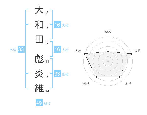 大和田 彪炎維さんを姓名の画数から五運を鑑定