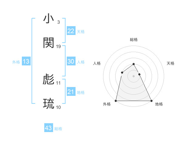小関 彪琉さんを姓名の画数から五運を鑑定