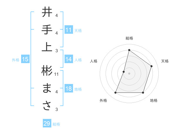 井手上 彬まささんを姓名の画数から五運を鑑定