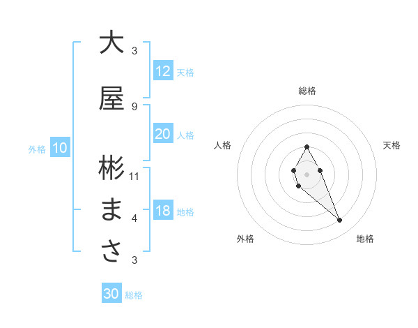 大屋 彬まささんを姓名の画数から五運を鑑定