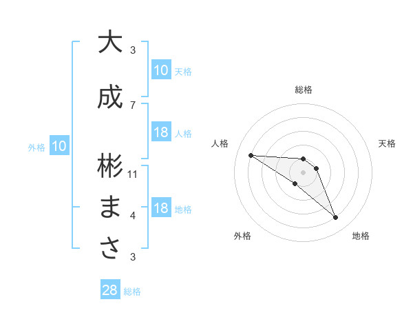 大成 彬まささんの地格は18画の4点!