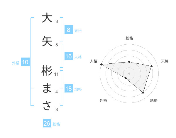 大矢 彬まささんを姓名の画数から五運を鑑定