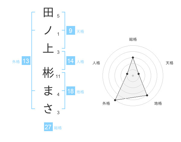 田ノ上 彬まささんを姓名の画数から五運を鑑定