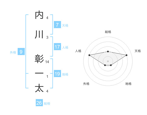 内川 彰一太さんを姓名の画数から五運を鑑定