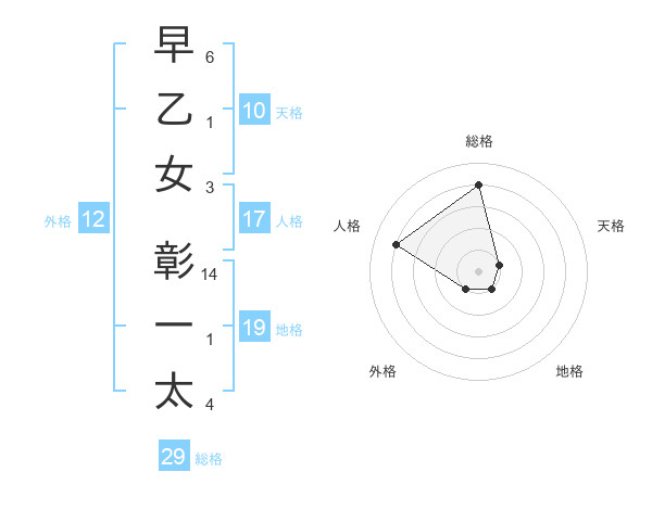 早乙女 彰一太さんを姓名の画数から五運を鑑定