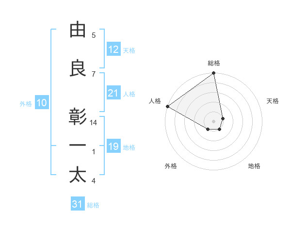 由良 彰一太さんを姓名の画数から五運を鑑定