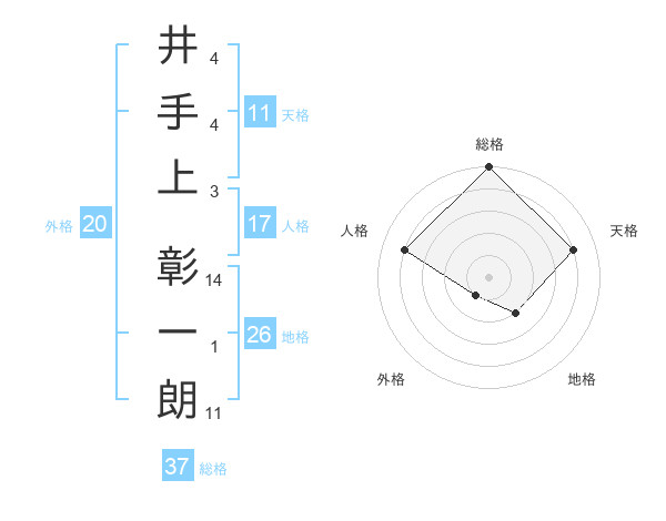 井手上 彰一朗さんを姓名の画数から五運を鑑定
