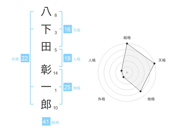 八下田 彰一郎さんを姓名の画数から五運を鑑定