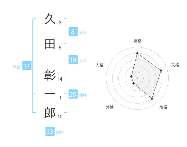 久田 彰一郎さんを姓名の画数から五運を鑑定