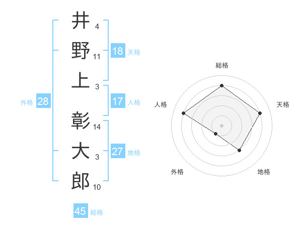 井野上 彰大郎さんの総格は45画の4点