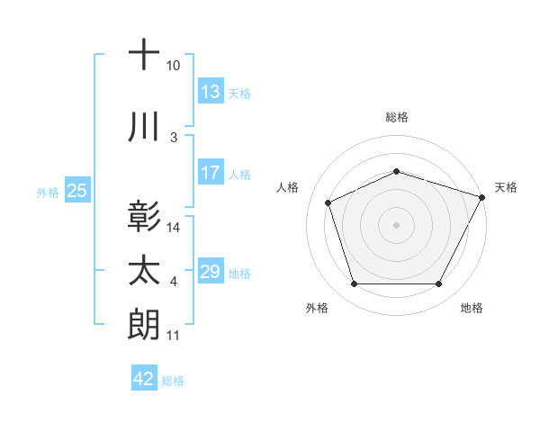 十川 彰太朗さんの総格は42画の3点!