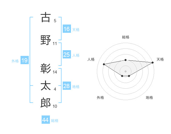 古野 彰太郎さんを姓名の画数から五運を鑑定