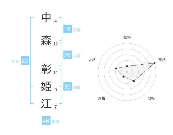 中森 彰姫江さんを姓名の画数から五運を鑑定