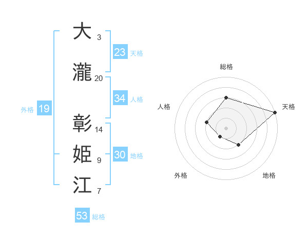 大瀧 彰姫江さんを姓名の画数から五運を鑑定