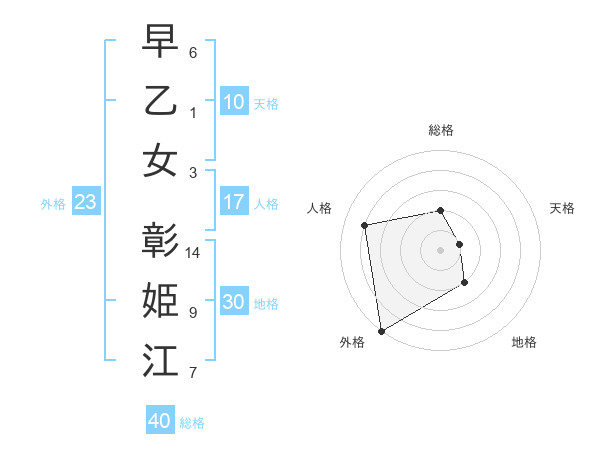 早乙女 彰姫江さんの総格は40画の2点!