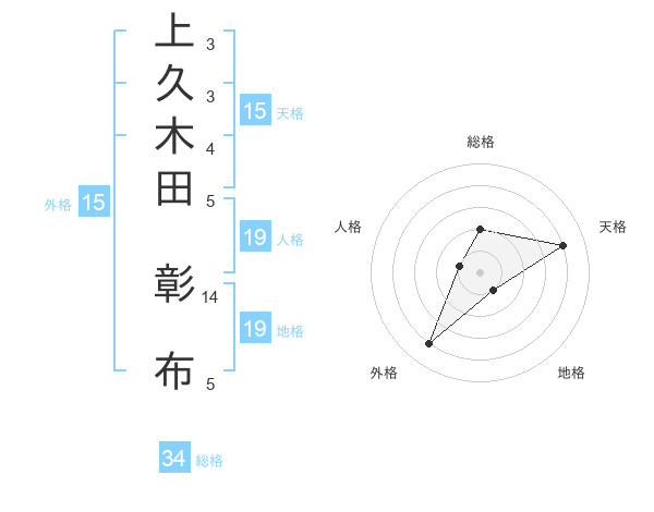 上久木田 彰布さんを姓名の画数から五運を鑑定