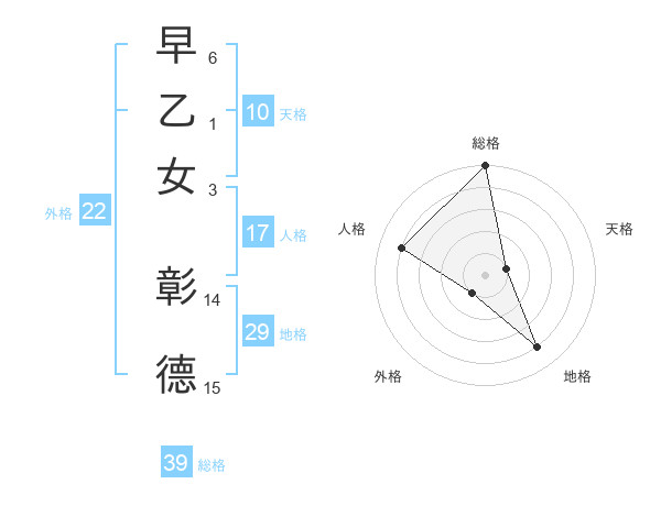 早乙女 彰德さんの総格は39画の5点!