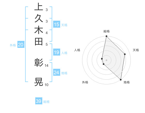 上久木田 彰晃さんを姓名の画数から五運を鑑定