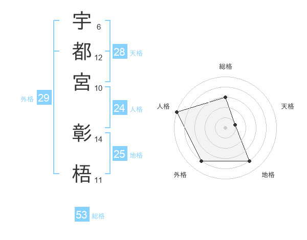 宇都宮 彰梧さんを姓名の画数から五運を鑑定