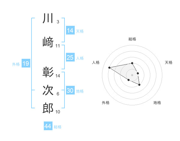 川﨑 彰次郎さんを姓名の画数から五運を鑑定