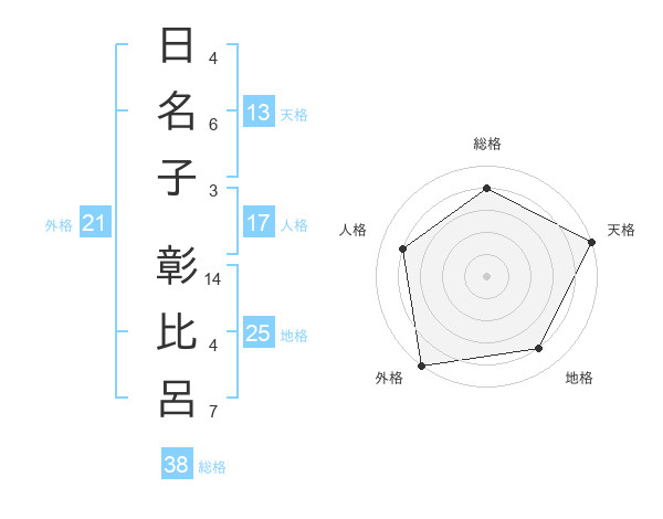日名子 彰比呂さんを姓名の画数から五運を鑑定