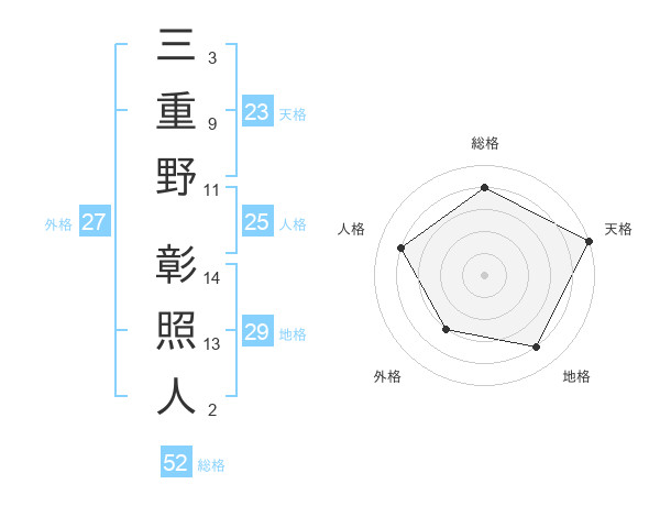 三重野 彰照人さんを姓名の画数から五運を鑑定