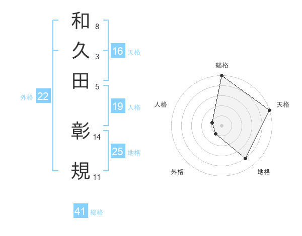 和久田 彰規さんを姓名の画数から五運を鑑定