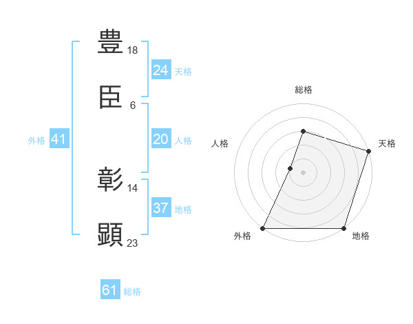 豊臣 彰顕さんを姓名の画数から五運を鑑定