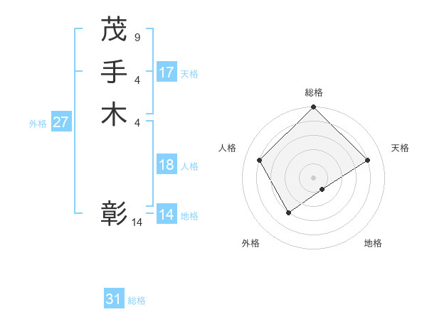 茂手木 彰さんを姓名の画数から五運を鑑定