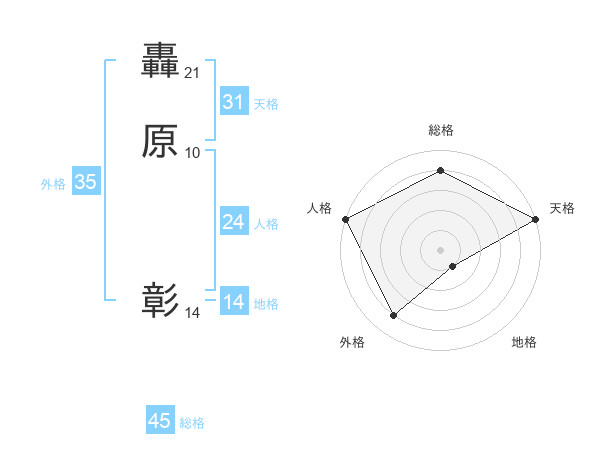 轟原 彰さんの天格は31画の5点!