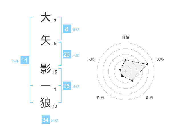 大矢 影一狼さんを姓名の画数から五運を鑑定