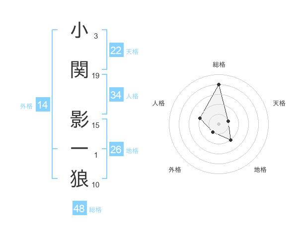 小関 影一狼さんを姓名の画数から五運を鑑定