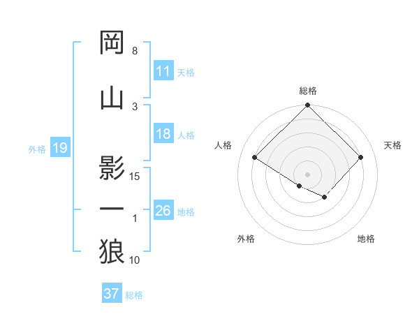 岡山 影一狼さんを姓名の画数から五運を鑑定
