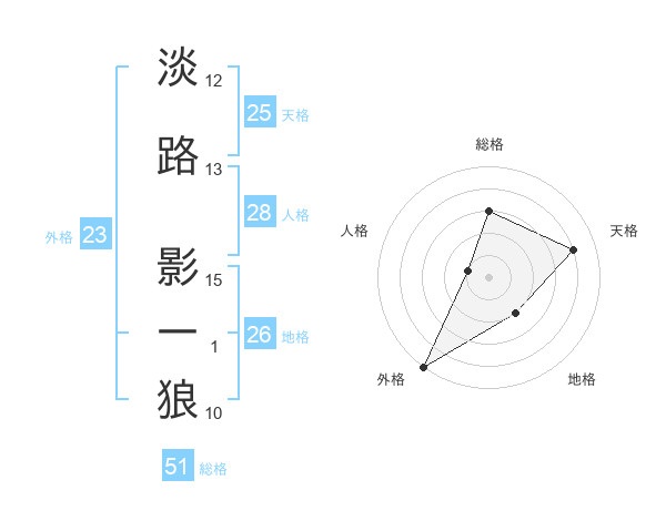 淡路 影一狼さんを姓名の画数から五運を鑑定
