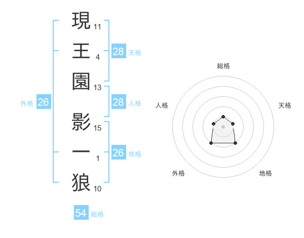 現王園 影一狼さんを姓名の画数から五運を鑑定