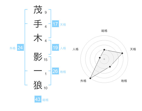 茂手木 影一狼さんを姓名の画数から五運を鑑定